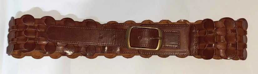 Curea din piele naturala cu aplicatii capse si sculptura in piele.Cureaua este lata prevazuta cu o frumoasa catarama antichizata .Estimata la mas s-m [vezi dimensiuni] Lungime fara catarama 77 Catarama 9,5cm,latime curea 6cm 50lei